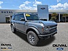 This 2025 Ford Bronco Badlands in Carbonized Gray Metallic, features Equipment Group 334A Lux Package (360-Degree Camera, Adaptive Cruise Control, Connected Navigation, Evasive Steering Assist, Front Parking Sensors, Information on Demand Panel, Radio: B&O Sound System by Bang & Olufsen, Sideview Mirrors, and Universal Garage Door Opener), 4-Wheel Disc Brakes, 4.7 Axle Ratio, 7 Speakers, ABS brakes, Air Conditioning, Alloy wheels, AM/FM radio: SiriusXM with 360L, AM/FM Stereo, Auto High-beam Headlights, Auto-dimming Rear-View mirror, Brake assist, Compass, Delay-off headlights, Driver door bin, Driver vanity mirror, Dual front impact airbags, Dual front side impact airbags, Electronic Stability Control, Emergency communication system: 911 Assist, Exterior Parking Camera Rear, Ford Performance Heavy-Duty Modular Front Bumper, Front anti-roll bar, Front Bucket Seats, Front Center Armrest, Front fog lights, Front reading lights, Front wheel independent suspension, Fully automatic headlights, Hard Top Sound Deadening Headliner, Heated door mirrors, Heated front seats, Heated steering wheel, Illuminated entry, Integrated roll-over protection, Leather Shift Knob, Leather-Trimmed/Vinyl Bucket Seats, Low tire pressure warning, Marine Grade Vinyl Heated Bucket Seats, Occupant sensing airbag, Outside temperature display, Overhead airbag, Overhead console, Panic alarm, Passenger door bin, Passenger vanity mirror, Power door mirrors, Power steering, Power windows, Radio data system, Rear-Window Defroster & Washer, Remote keyless entry, Security system, Shadow Black Painted Hard Top, SiriusXM w/360L, Speed control, Split folding rear seat, Steering wheel mounted audio controls, SYNC 4, Tachometer, Telescoping steering wheel, Tilt steering wheel, Traction control, Trip computer, Variably intermittent wipers, and Voltmeter: 4WD **COMMISSION FREE SALES PEOPLE, **CAR WASHES FOR LIFE, **1ST OIL CHANGE FREE.<br><br><br>Prices are plus tax tag title $398 Electronic Filing Fee and deale