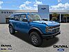 This 2025 Ford Bronco Badlands in Velocity Blue Metallic, features Equipment Group 332A Mid Package (2-Door Intelligent Access w/Lock/Unlock, Ambient Footwell Lighting, Connected Navigation, Dr & Pass Illuminated Sliding Visor Vanity Mirrors, Dual Smart Charging USB Ports, Dual-Zone Electronic Automatic Temperature Control, Front Row Heated Seats, Power Outlet - Back Side of Center Floor Console, and Rear Parking Sensors), 4-Wheel Disc Brakes, 4.7 Axle Ratio, 7 Speakers, ABS brakes, Air Conditioning, Alloy wheels, AM/FM radio: SiriusXM with 360L, AM/FM Stereo, Auto High-Beam Headlamps, Auto High-beam Headlights, Auto-dimming Rear-View mirror, BLIS Blind Spot Information System, Body Color-Painted Hard Top, Brake assist, Compass, Delay-off headlights, Driver door bin, Driver vanity mirror, Dual front impact airbags, Dual front side impact airbags, Electronic Stability Control, Emergency communication system: 911 Assist, Exterior Parking Camera Rear, Ford Performance Heavy-Duty Modular Front Bumper, Front anti-roll bar, Front Bucket Seats, Front Center Armrest, Front fog lights, Front License Plate Bracket, Front reading lights, Front wheel independent suspension, Fully automatic headlights, Hard Top Sound Deadening Headliner, Heated door mirrors, Heated front seats, Heated steering wheel, Illuminated entry, Integrated roll-over protection, Lane-Keeping System, Leather Shift Knob, Low tire pressure warning, Marine Grade Vinyl Heated Bucket Seats, Occupant sensing airbag, Outside temperature display, Overhead airbag, Overhead console, Panic alarm, Passenger door bin, Passenger vanity mirror, Power door mirrors, Power steering, Power windows, Pre-Collision Assist w/Automatic Emergency Braking, Radio data system, Rear-View Camera, Rear-Window Defroster & Washer, Remote keyless entry, Security system, SiriusXM w/360L, Speed control, Split folding rear seat, Steering wheel mounted audio controls, SYNC 4, Tachometer, Telescoping steering wheel, Tilt steering wheel, Traction
