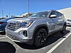Silver Mist 2026 Volkswagen Atlas 2.0T SE w/Technology FWD 8-Speed Automatic with Tiptronic 2.0L TSI 3rd row seats: split-bench, 4-Wheel Disc Brakes, 4-Wheel Independent Suspension, 6 Speakers, ABS brakes, Air Conditioning, AM/FM radio: SiriusXM with 360L, Auto High-beam Headlights, Auto-dimming Rear-View mirror, Automatic temperature control, Black Wheel Package, Brake assist, Bumpers: body-color, Compass, Custom 20'' Black Wheels, Delay-off headlights, Driver door bin, Driver vanity mirror, Dual front impact airbags, Dual front side impact airbags, Electronic Stability Control, Emergency communication system: VW Car-Net Safe & Secure 5-year, Exterior Parking Camera Rear, Four wheel independent suspension, Front anti-roll bar, Front Bucket Seats, Front Center Armrest, Front dual zone A/C, Front fog lights, Front reading lights, Fully automatic headlights, Garage door transmitter: HomeLink, Heated and Actively Ventilated Front Bucket Seats, Heated door mirrors, Heated front seats, Heated steering wheel, Heavy Duty Trunk Liner with VW CarGo Blocks, Illuminated entry, Low tire pressure warning, Occupant sensing airbag, Outside temperature display, Overhead airbag, Overhead console, Panic alarm, Panoramic Sunroof Package, Passenger door bin, Passenger vanity mirror, Perforated V-Tex Leatherette Seating Surfaces, Power door mirrors, Power driver seat, Power Liftgate, Power steering, Power Tilting and Sliding Panoramic Sunroof, Power windows, Radio data system, Radio: MIB3 Composition Media, Rain sensing wipers, Rear air conditioning, Rear anti-roll bar, Rear reading lights, Rear seat center armrest, Rear window defroster, Rear window wiper, Remote keyless entry, Retractable Privacy Cover For Cargo Area, Rubber Mats Kit (2-Row), Security system, Speed control, Speed-sensing steering, Split folding rear seat, Spoiler, Steering wheel mounted audio controls, Tachometer, Telescoping steering wheel, Tilt steering wheel, Traction control, Trip computer, Turn signal indicator m